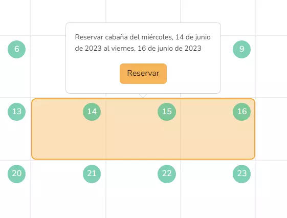 1. Selecciona los días que te gustaría reservar la cabaña. Haz clic y manten presionado para elegir varios días.